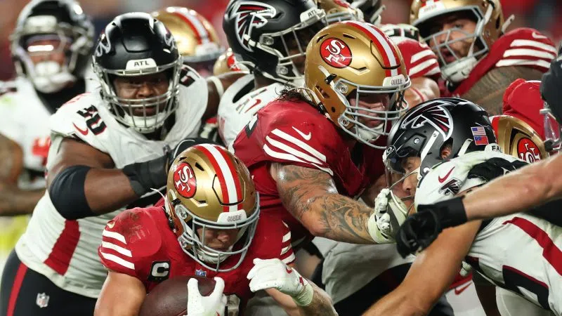 SANTA CLARA, CA - Christian McCaffrey and the San Francisco 49ers fought past the Atlanta Falcons on Sunday night, winning 20-10 at Levi's Stadium. McCaffrey scored both San Francisco touchdowns and finished the night with 201 total yards on 31 touches. Ryan Radtke and Marcel Reece called the action on Westwood One Spo...