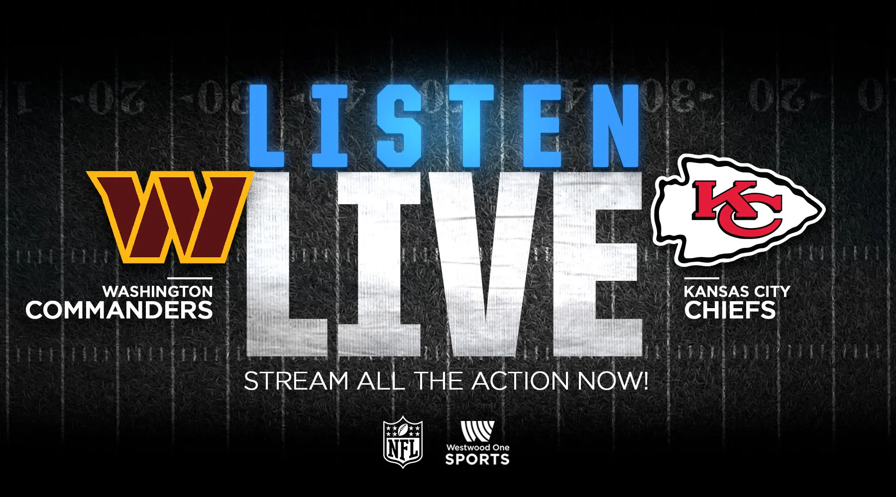 Washington Commanders at Kansas City Chiefs Welcome to the new home of Westwood One Sports Westwood One Sports App Westwood One Sports 24/7 Launches December 29th See Feature 0See Feature 1See Feature 2See Feature 3