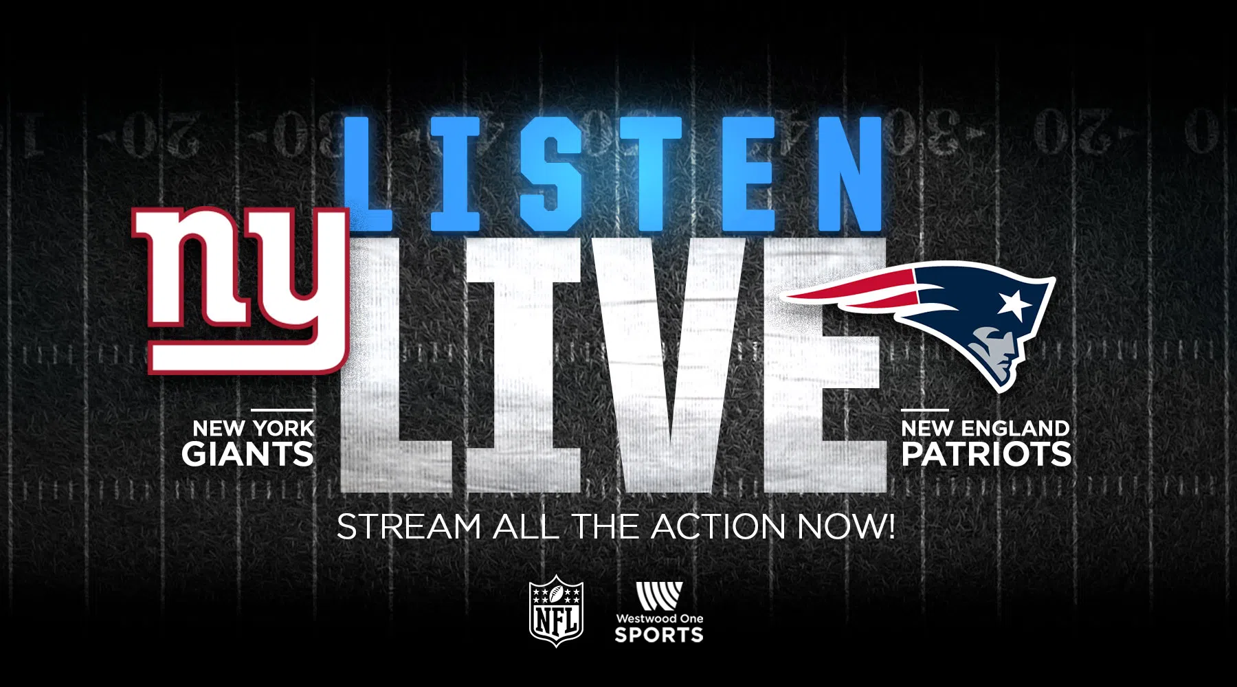 New York Giants at New England Patriots Welcome to the new home of Westwood One Sports Westwood One Sports App Westwood One Sports 24/7 Launches December 29th The 126th Army-Navy Game, presented by USAA See Feature 0See Feature 1See Feature 2See Feature 3See Feature 4